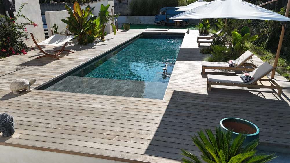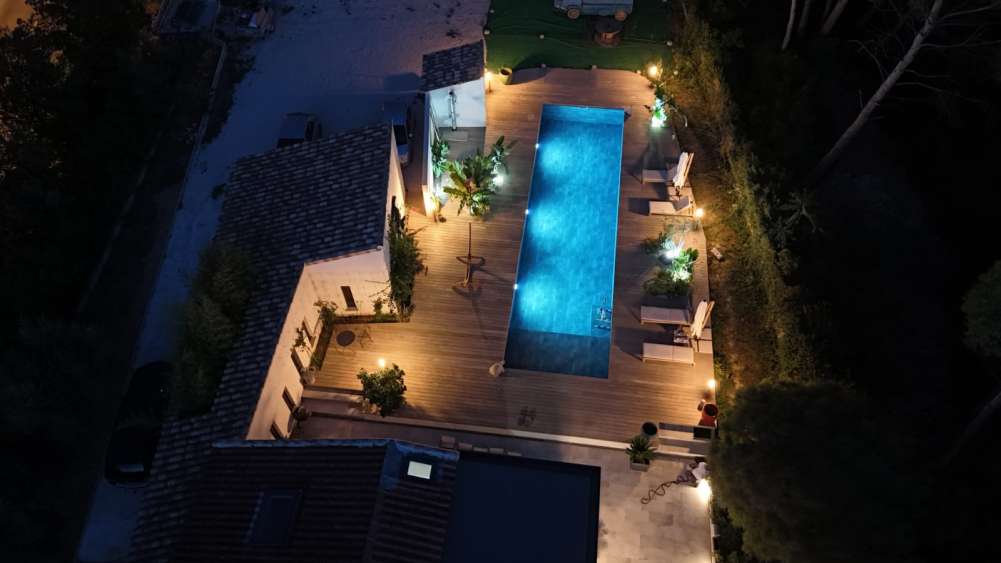 La terrasse partagée et la piscine illuminée vous invite à profiter de la douceur de vos soirées.
